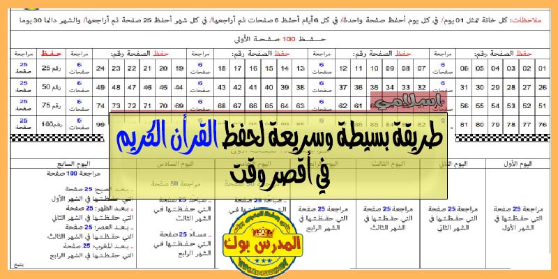 - الكتيب يوضح طريقة حفظ القرأن الكريم كله بطريقة سهلة ومنظمة