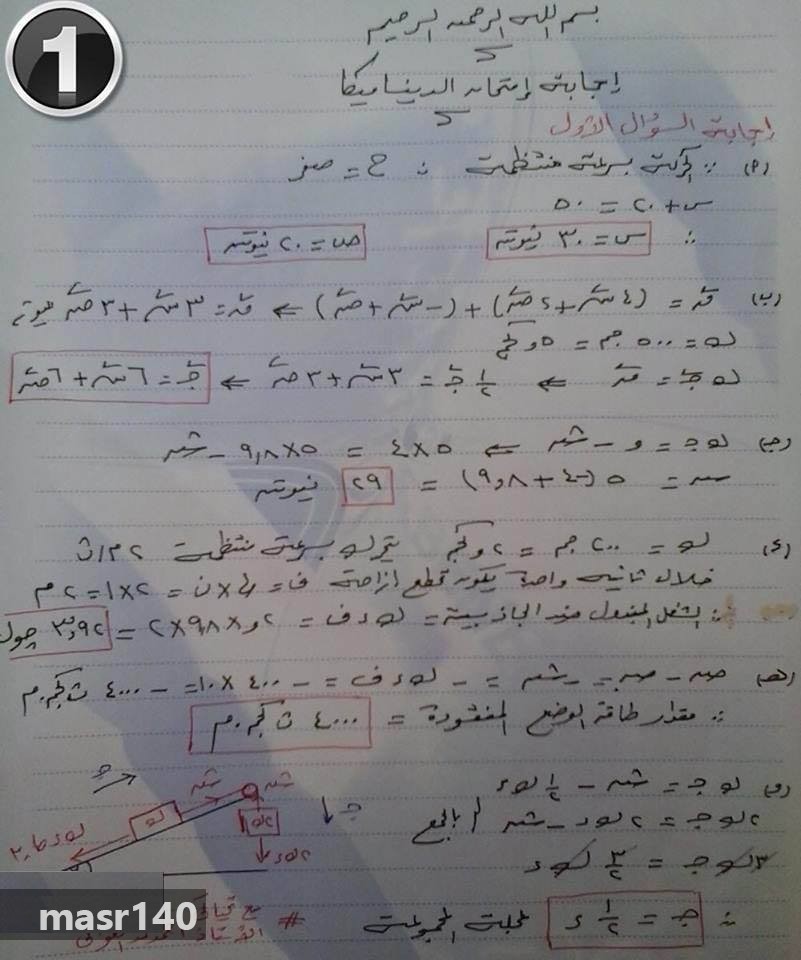 امتحان الديناميكا 2017 سيكون من نماذج البوكلت :
