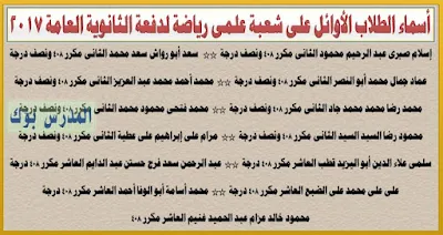 الأوائل علي شعبة علمي رياضة ( الثانوية العامة 2017 )