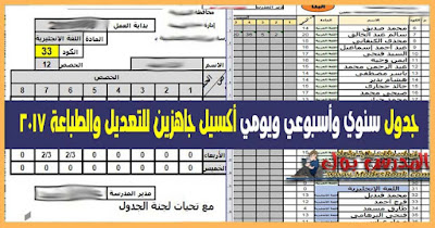 اعزائي المعلمين نقدم لكم جدول مدرسي اكسيل 2017 للمدرسين والمديرين لكي ينضم العمل داخل المدرسة وتستطيع طباعته علي ورق a3 أو ورق a4 وتحتاج في استخدامه فقط حزمة ميكروسوفت محتوية علي برنامج اكسيل ونقدم لكم اصدارين تابع معنا