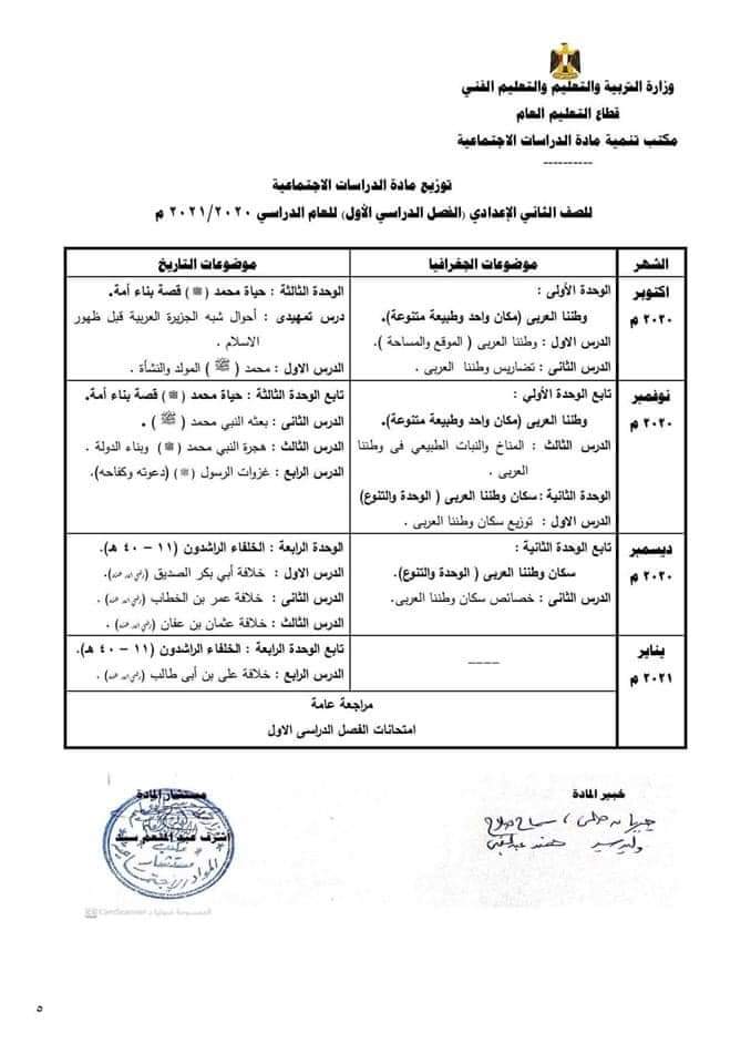 توزيع مادة الدراسات الأجتماعية الصف الثاني الأعدادي ترم أول 2021,2021