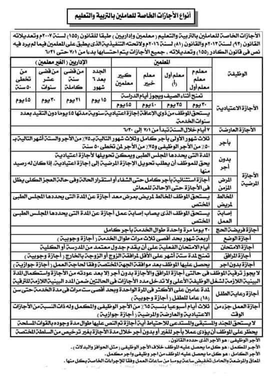 | فاكس نصاب الأجازات الاعتيادية للمعلمين وموعد الحصول عليها طوال العام والبديل النقدي لها |