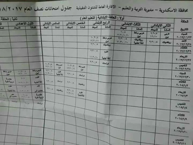 | جدول امتحانات الاسكندرية 2023 نصف العام |