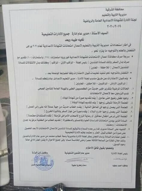 | قواعد الاعتذار عن امتحانات الشهادة الاعدادية أو التصحيح |