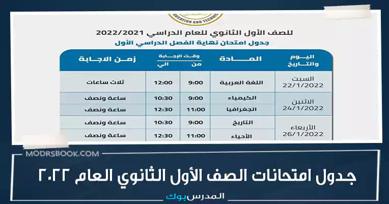 أعزائي طلاب الصف الأول الثانوي أهلا وسهلا بكم في موقعكم التعليمي المدرس بوك نقدم لكم اليوم جدول امتحانات الصف الأول الثانوي 2022 بعد أن أعلنت وزارة التربية والتعليم جدول الاختبار الإلكتروني لطلاب الصف الأول الثانوي.