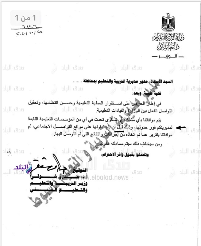 وحذرت وزارة التربية والتعليم والتعليم الفني ، المديريات من أنه من سيخالف هذه التعليمات سيعض نفسه للمساءلة القانونية.