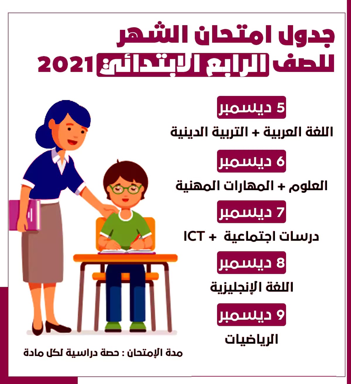 جدول امتحانات الصف الرابع الإبتدائي 2022