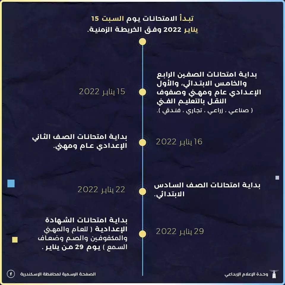 مواعيد امتحانات الفصل الدراسي الأول للعام الدراسي 2021/ 2022 لسنوات النقل بالتعليم العام والتعليم الفني والشهادة الإعدادية بعد إعتماد اللواء محمد الشريف #محافظ_الإسكندرية ⬇️⬇️