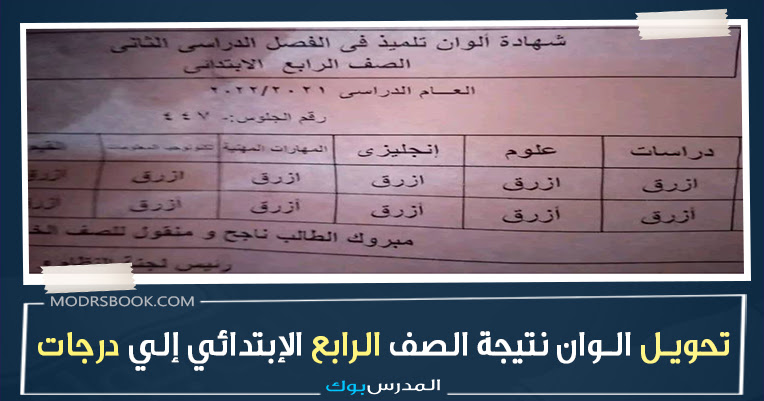 ننشر لكم أعزائي متابعي المدرس بوك دلالة ألوان نتيجة الصف الرابع الابتدائي 2022 وكيف يمكن لولي الأمر تحويل تلك الألوان إلى درجات يتم تقييم الطالب على أساسها، وذلك كالآتي: