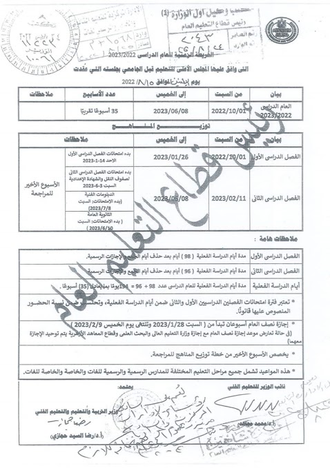 | الخريطة الزمنية للعام الدراسي 2022 - 2023 |