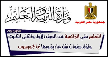 يناير 20, 2020 التعليم تنفي التراكمية عن الصف الأول والثاني الثانوي وتؤكد سنوات نقل عادية ولها دور ثاني محمد الجيزاوي التراكمية للصف الأول والثاني الثانوي أكدت وزارة التربية والتعليم والتعليم الفني، عدم صحة ما أثير عبر مواقع التواصل الاجتماعي، بشأن اعت...